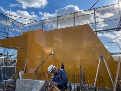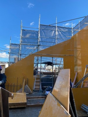 工事中の目黒区の現場の3階部分の型枠ですがあまり見慣れない形状ですね。