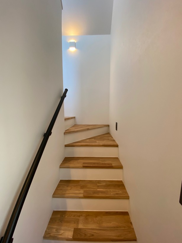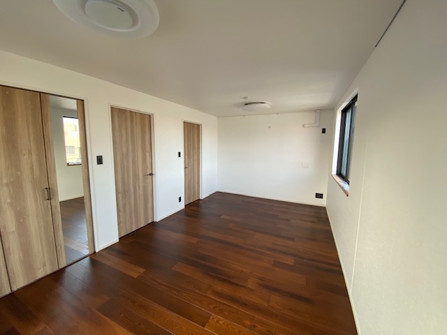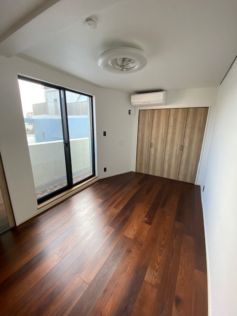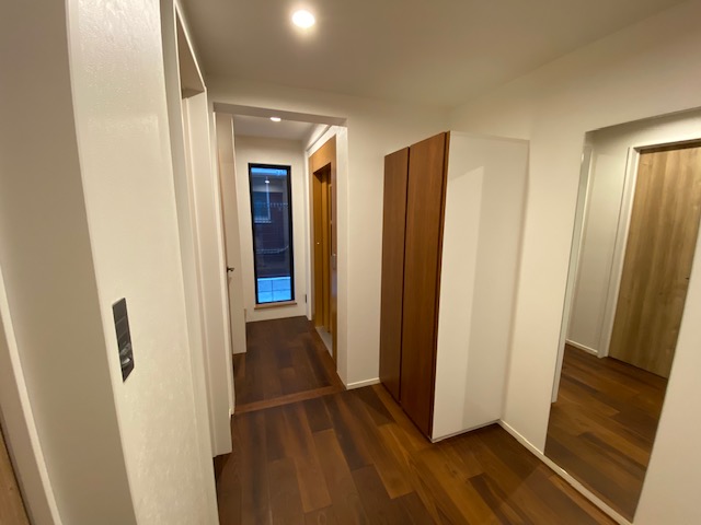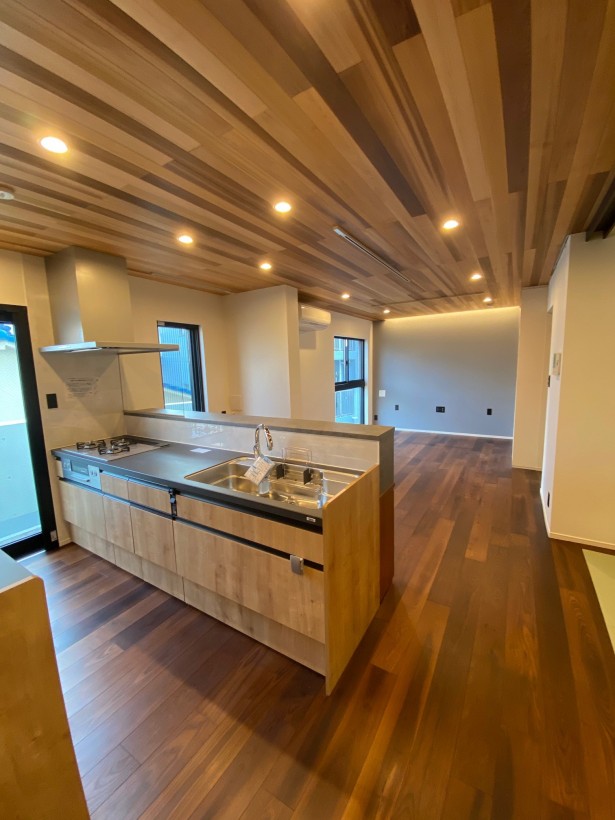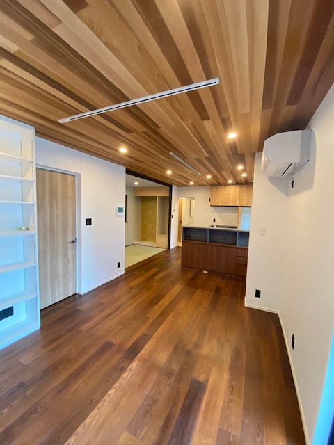 不燃化特区で計画を行った賃貸併用4階建てのRC住宅の実例です。燻製された無垢フローリングに床暖房の採用、天井にも無垢フローリングを取付けぬくもりのある温かい家が完成しました。