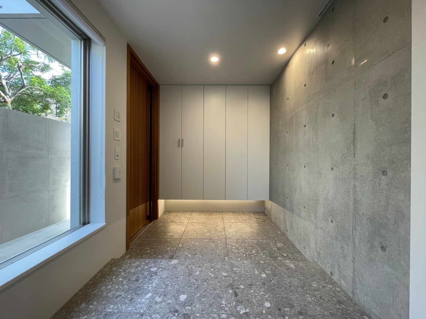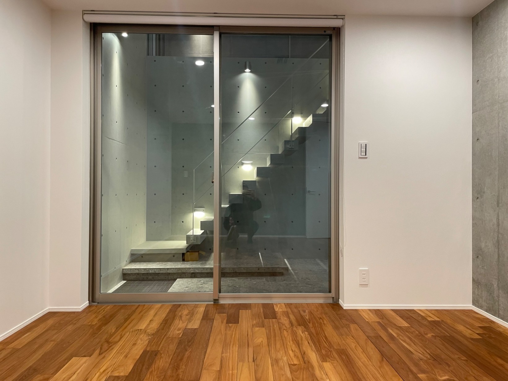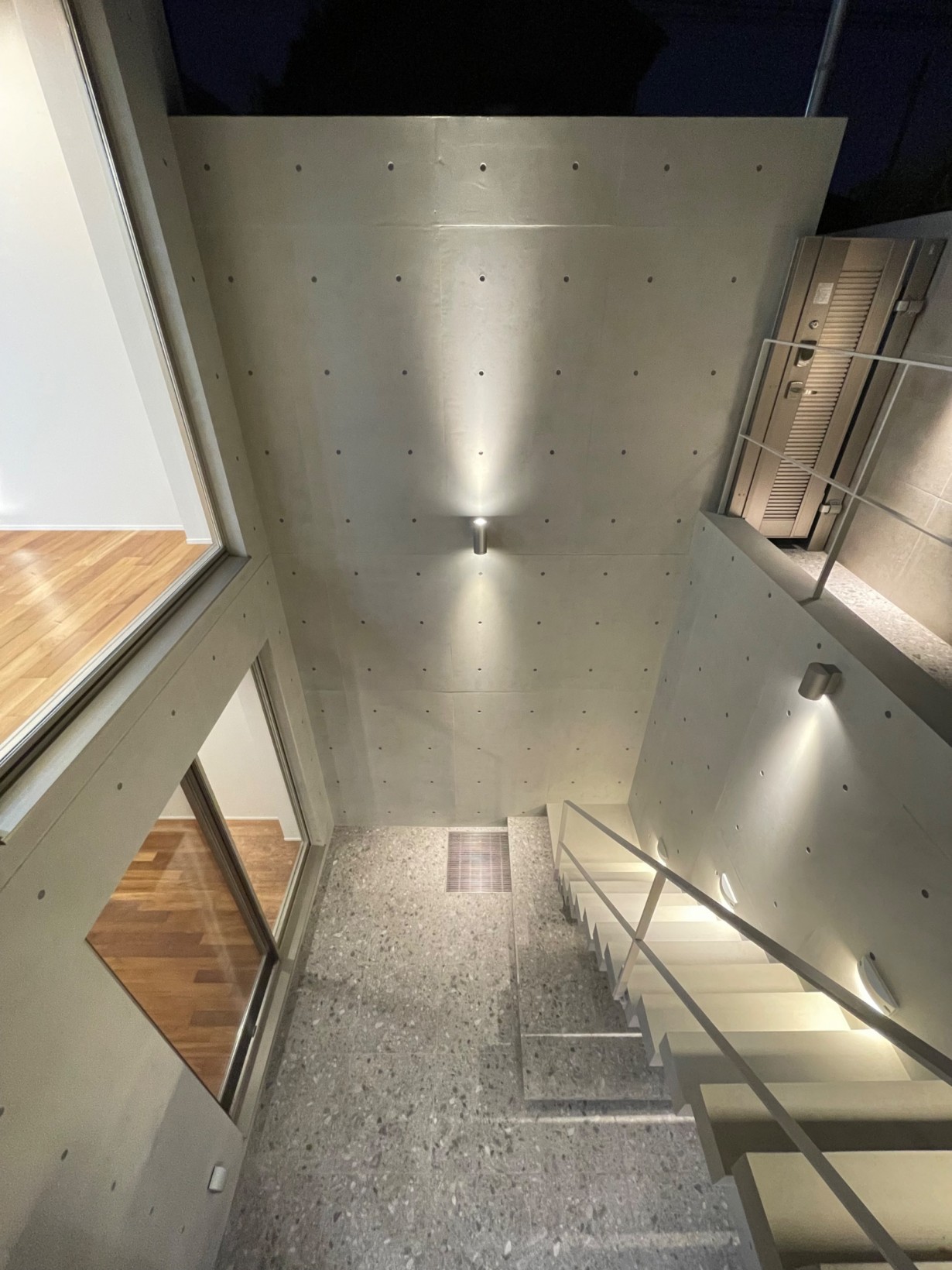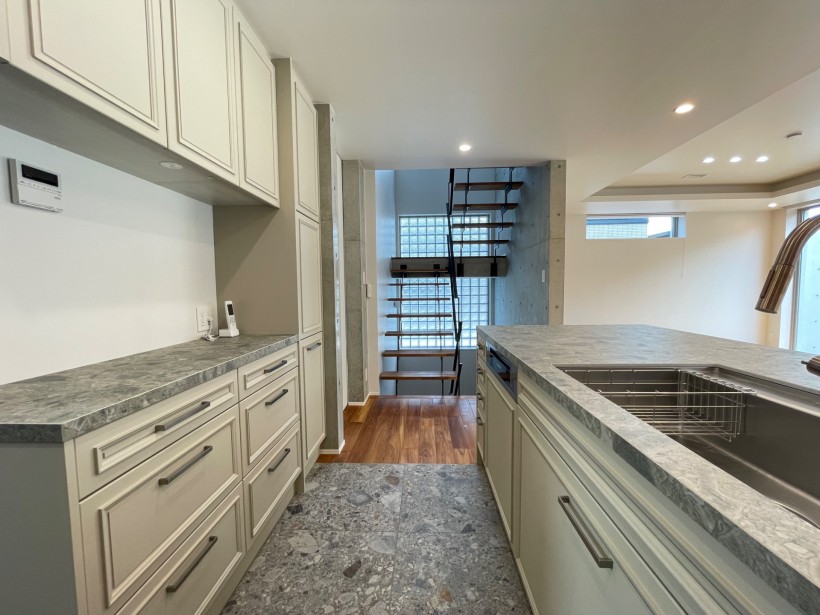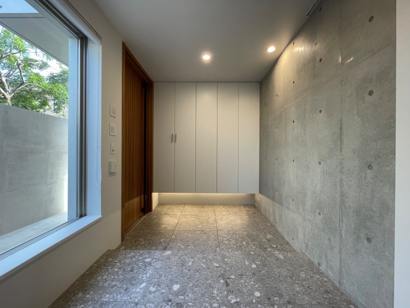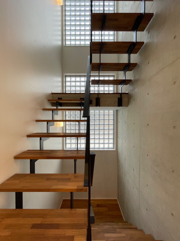 また地下空間を大きく造ることで建蔽率が厳しい敷地条件をゆとりのある家へとしながらコンクリート打放し壁や